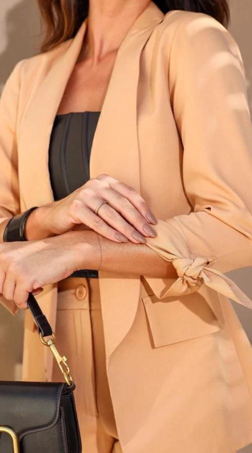 Para um look corporativo sofisticado, aposte em uma camisa de tecido leve e calça de alfaiataria. Quer algo mais descontraído? Combine o blazer com uma camiseta básica, jeans e tênis para um visual moderno e elegante.