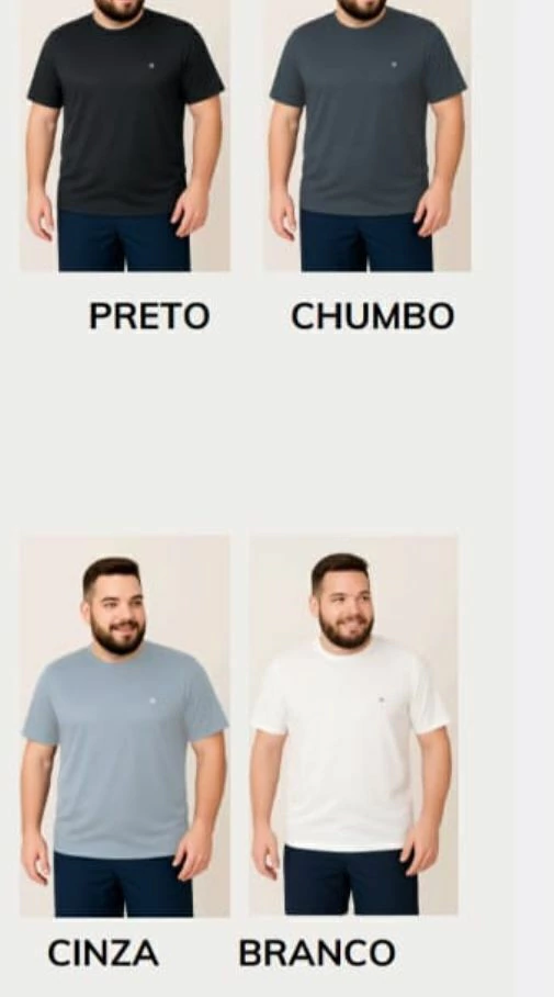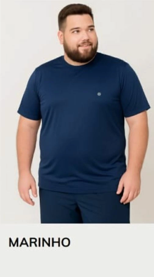 CAMISETA MEIA MALHA PENTEADA PLUS VOLEIO