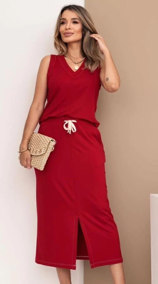 Invista no Conjunto Casual em Malha de Algodão Fresca e descubra uma peça que une qualidade, conforto e estilo para você estar sempre preparada para o seu dia a dia com muito charme.