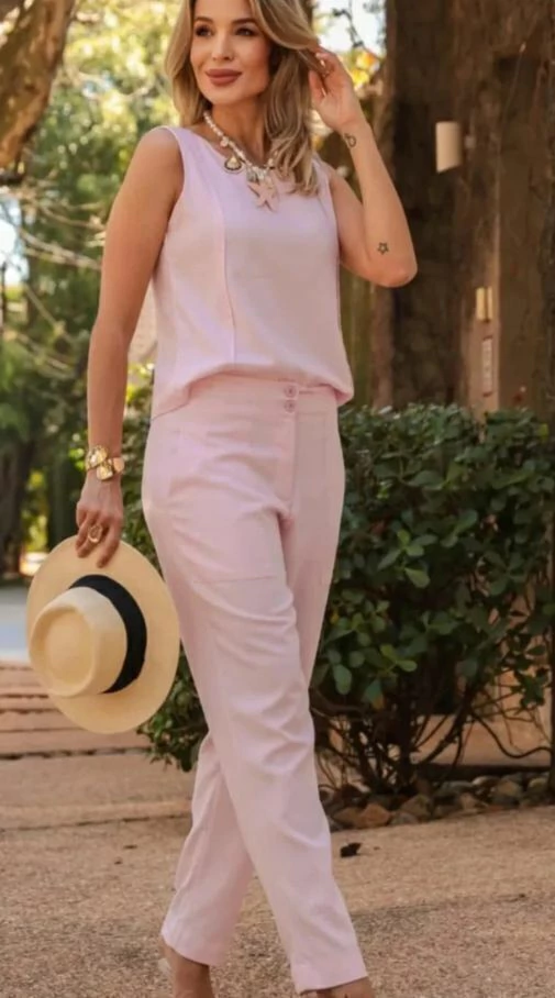 Combine com acessórios neutros para um visual clean e sofisticado, ou aposte em peças coloridas para um look mais vibrante e moderno. O conjunto é ideal para quem valoriza praticidade sem perder a elegância.
