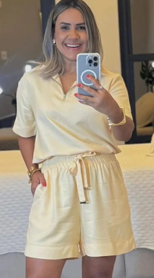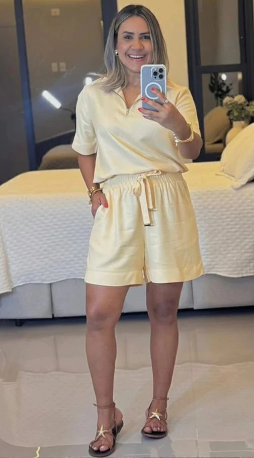 Combine com acessórios delicados para um toque de sofisticação ou aposte em calçados confortáveis para um look despojado e cheio de personalidade. O Conjunto ST77 é aquela peça que você vai querer levar para todas as ocasiões, realçando sua beleza natural com muito charme.