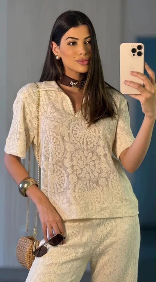 Seja para um passeio, um encontro ou eventos informais, o Conjunto ST97 é versátil e fácil de combinar. Aposte em acessórios minimalistas e calçados neutros para destacar a beleza da renda e criar looks com muita personalidade.