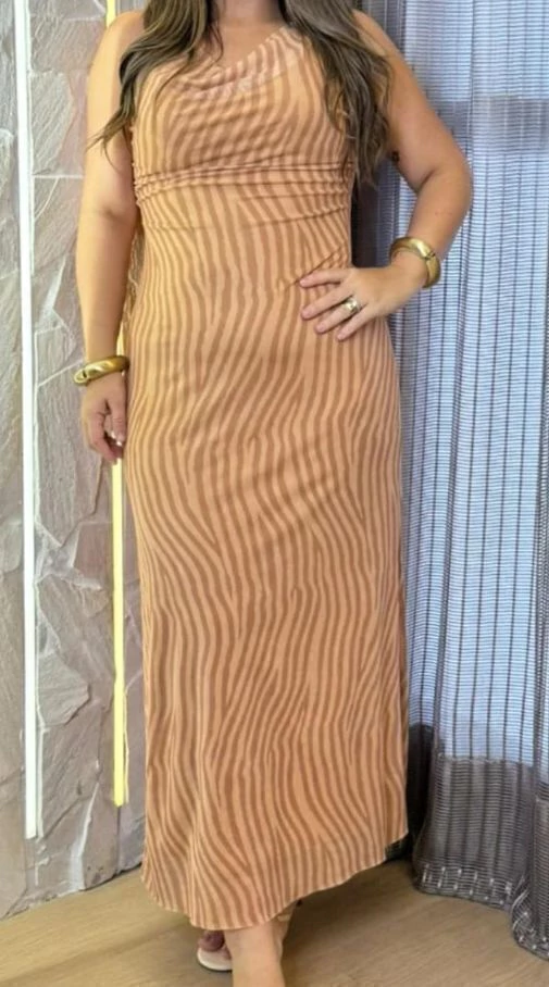 Este vestido é a escolha perfeita para quem deseja aliar praticidade e sofisticação sem abrir mão do conforto. Seu tecido de alta qualidade é versátil e elegante, garantindo que você esteja sempre pronta para impressionar com um visual contemporâneo e cheio de personalidade.